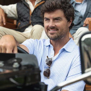 Gators Script Tri Stripe Performance Polo - Blue Horizon