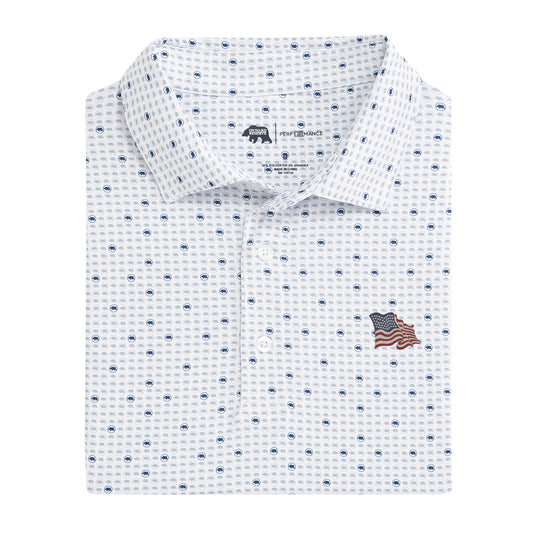Vintage Flag Tour Printed Performance Polo - Dark Denim
