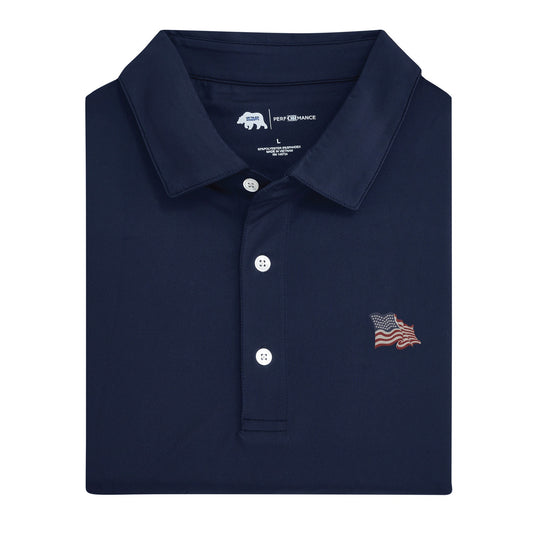 Vintage Flag Solid Performance Polo - Classic Navy