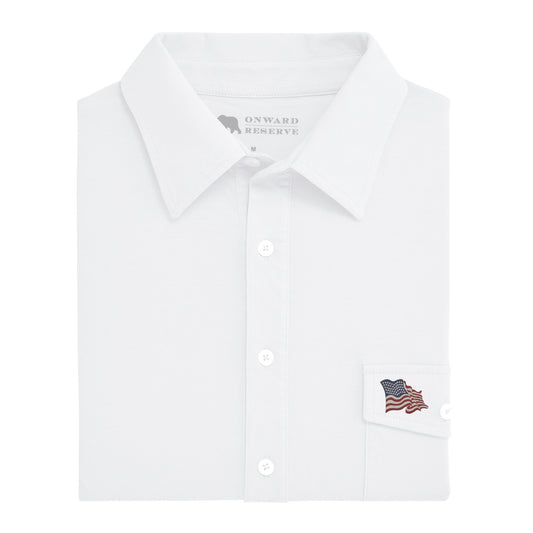 Vintage Flag Old School Polo - White