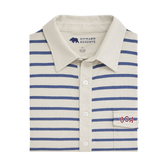 Vintage Flag Row Stripe Icon Polo - Sky