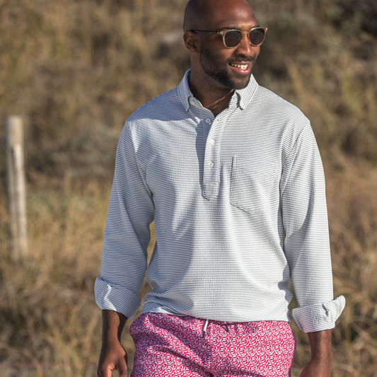 Vintage Flag Waterfront Fishing Shirt - Blue Indigo