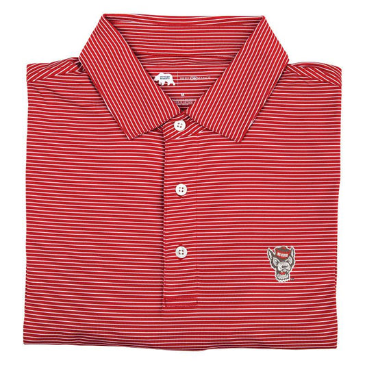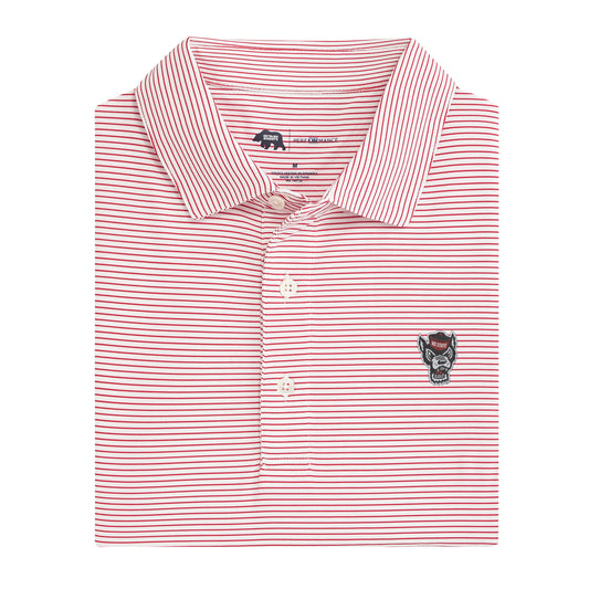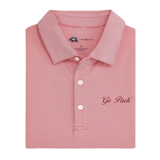 Go Pack Vintage Script Hairline Stripe Performance Polo - Red