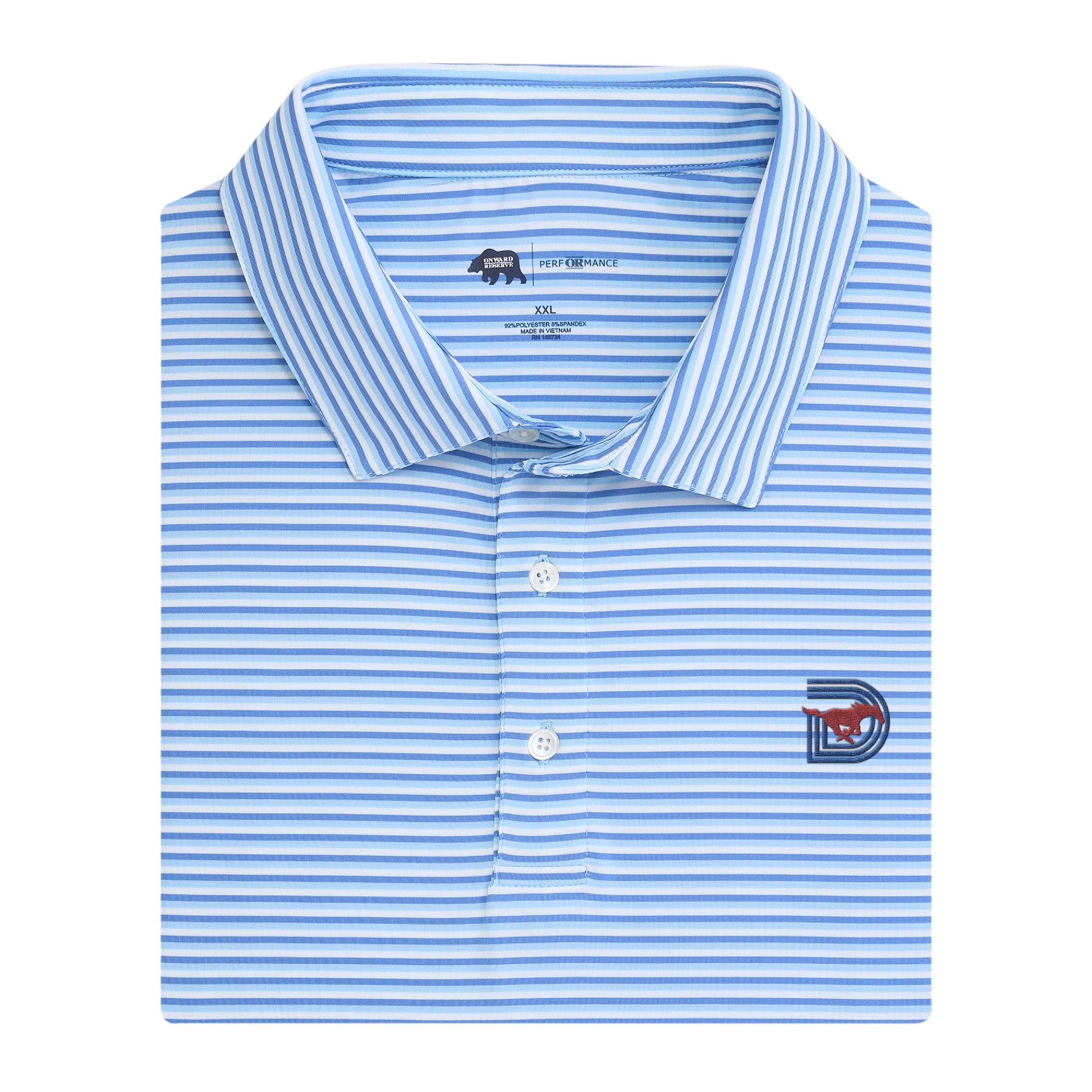 SMU Triple D Tri Stripe Performance Polo - Blue Horizon