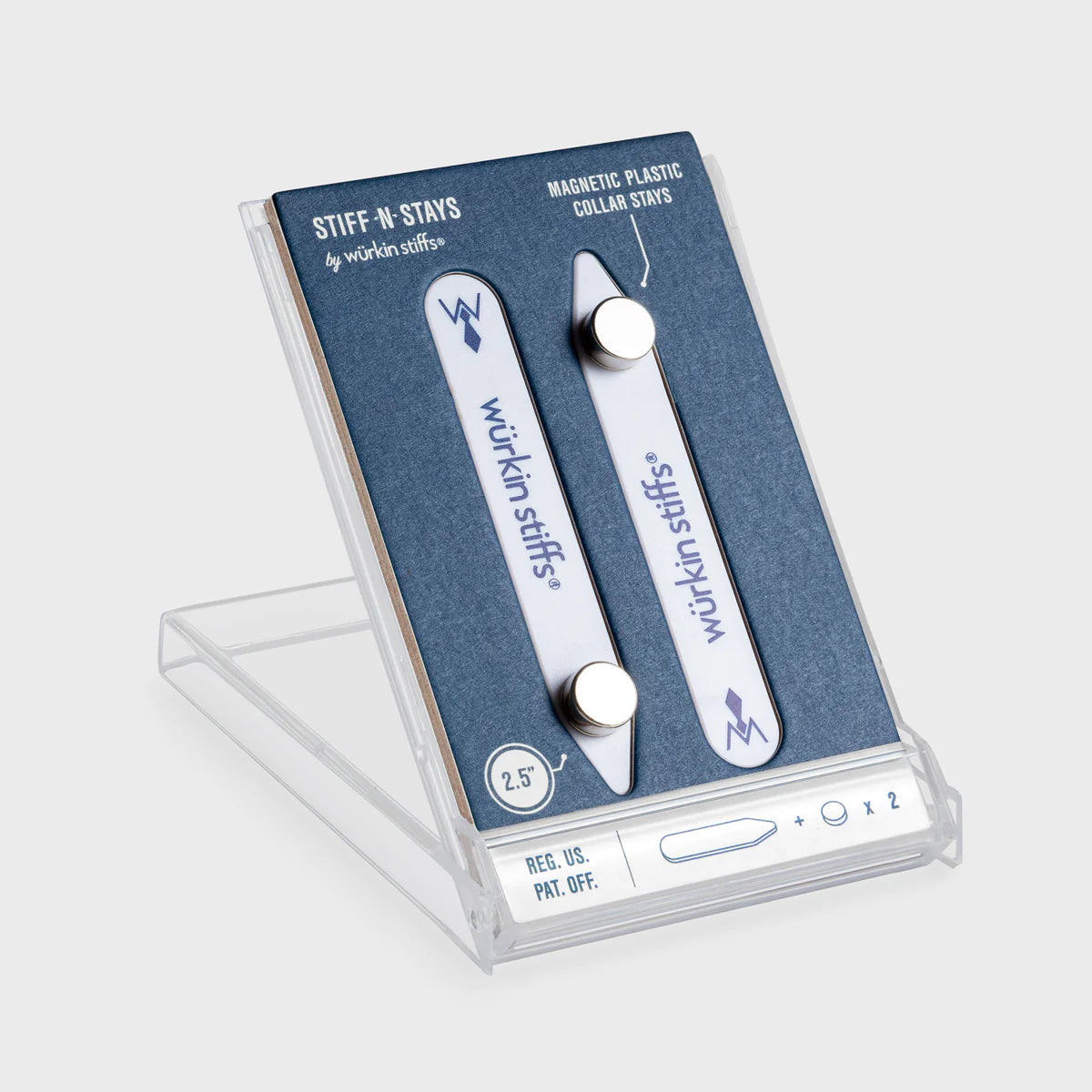 A collar stay that does exactly what it says, for as long as you need it to. Plastic, magnetic, and patented. Keep your floppy collars at bay on video calls, dinner dates, or presentations
